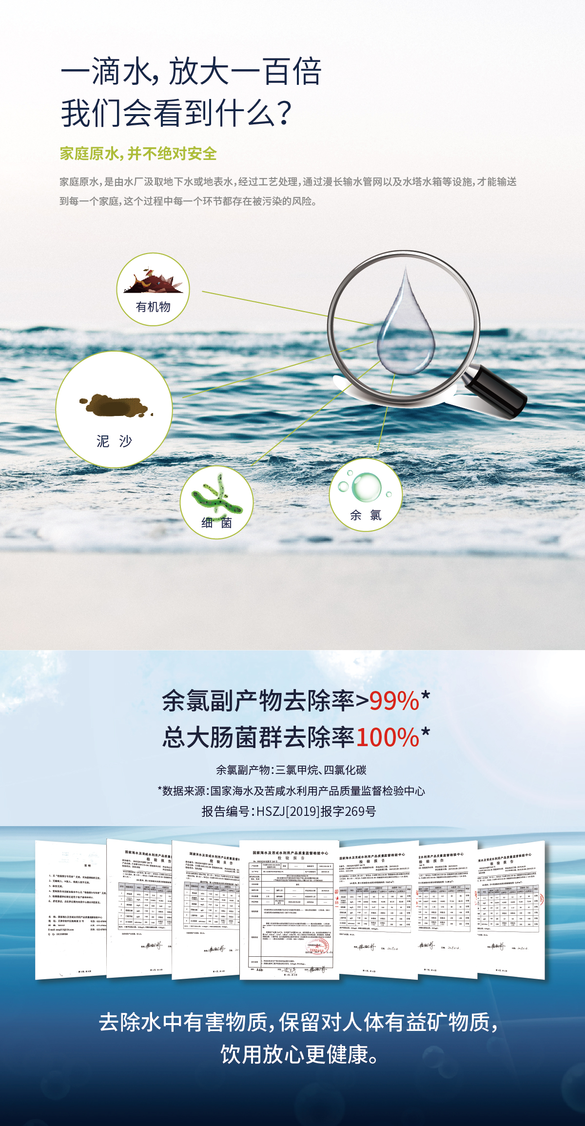 用于去除水中余氯、懸浮物、雜質等污染物,攔截大腸桿菌等細菌、膠體,去除異色、異味、三氯甲烷、苯酚等有機物,解決飲水安全問題的綜合凈水裝置